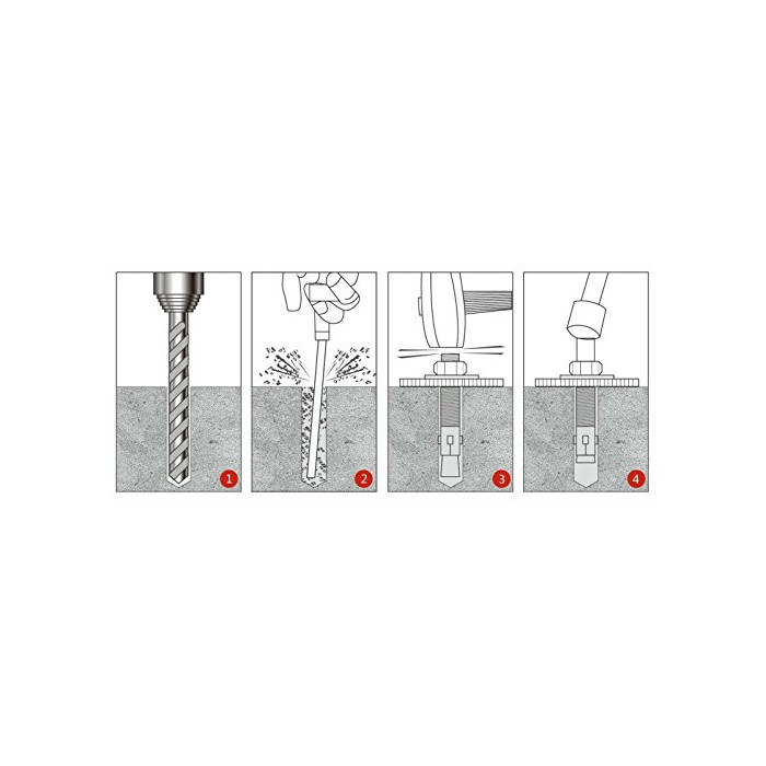 The Wedge Anchor also known as Sleeve Anchor or Through Bolt Anchor can be installed through the work piece. This saves considerable time in installation avoiding alignment errors and provides an exceptionally efficient retention method for fixing to concrete and stone. Its firm fixing action permits repeated removal and replacement of the nut without weakening the anchorage. As the bolt is driven into the fixing hole the clip is compressed ensuring a tight interference fit. When torque is then applied to the nut the tapered section of the bolt retracts through the clip which expands to create a rapid and permanent grip. As for the internal threaded version TBA-I, it can be installed in normal drill holes without a setting tool.